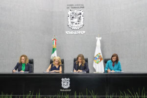 En el auditorio del Poder Judicial de Tamaulipas se llevó a cabo la Firma del Convenio Marco de Colaboración para el Ingreso a la Carrera Judicial, encabezada por la Magistrada Presidenta Tania Gisela Contreras López, junto a la doctora Lorena Josefina Pérez Romo, Presidenta de la Comisión de Carrera Judicial y Especialización del Órgano de Administración Judicial Federal; la magistrada Ludivina Aldape Garfias, Presidenta del Tribunal de Disciplina; y la licenciada Hilda Guadalupe Leal Gutiérrez, Presidenta del Órgano de Administración Judicial.